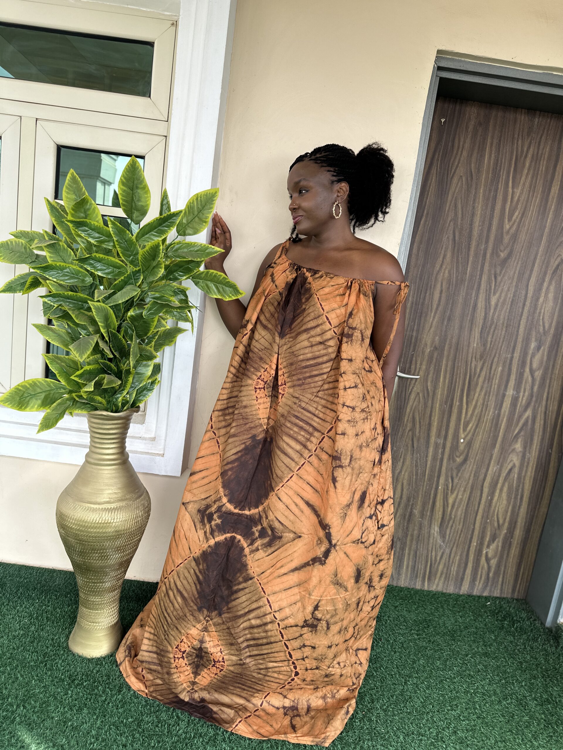 Spaghetti Bubu Gown-Black & Brown